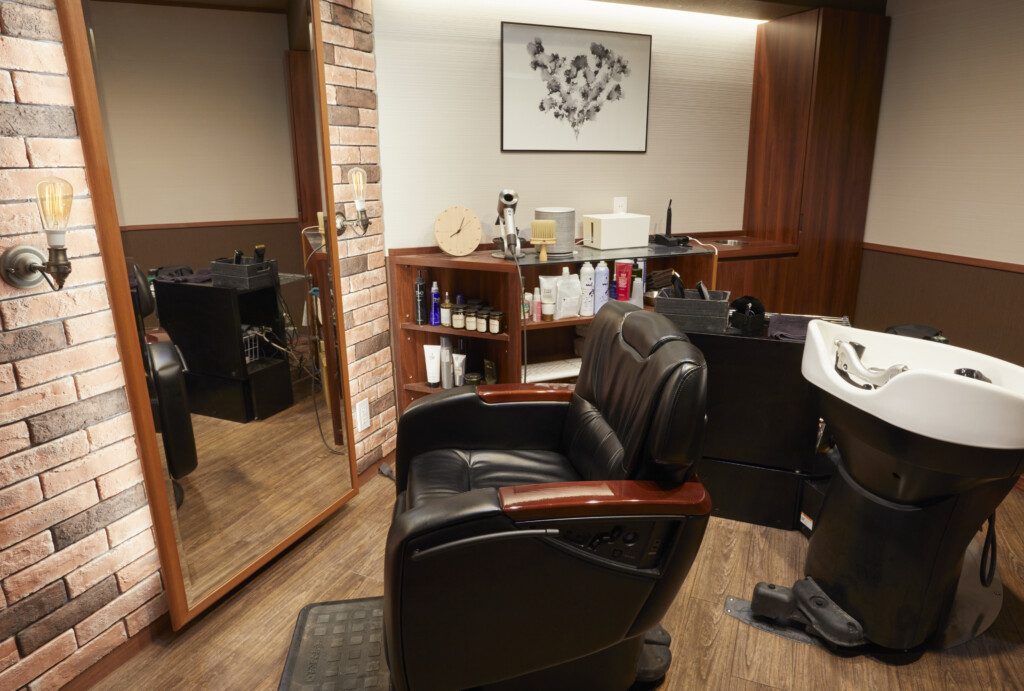 全室個室となっております。お客様はカット、シャンプーやヘッドスパ、最後の仕上げまで移動することなくすべての施術を受けることができるvip仕様。ほかのサロンでは体験できないメンズのための空間を個室空間をお楽しみください。